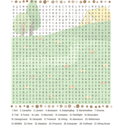 Camping Wordsearch Printable (Free Puzzle for Kids)